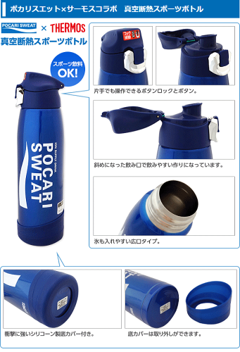 メーカー希望小売価格はメーカーカタログに基づいて掲載しています item-Information 【商品詳細説明】 ■メーカー 大塚製薬/サーモス(Otsuka/THERMOS) ■品名 ポカリスエット 真空断熱スポーツボトル 1L用 ■品番 56561 ■メーカー希望小売価格 ¥3,480(税別) ■サイズ 本体:85×85×260mm 化粧箱入り:90×90×295mm ■質量 本体:380g 化粧箱入り:480g ■容量 約1.0L ■材質 本体:ステンレス鋼(アクリル樹脂塗装) フタ・キャップ本体:ポリプロピレン フタパッキン:シリコーン シールパッキン:シリコーン 底カバー:シリコーン ■保冷効果 9度以下 ※室温20度±2度において内容器に水温4度±1度の 冷水を満たし、通常の使用状態として 6時間放置した場合における水の温度。
