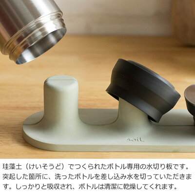 soil ドライングボード for ボトル 珪藻土 ホワイト ピンク グリーン ソイル 水切り 水切りトレー 水切りマット マグ タンブラー マグボトル 乾燥 ボトル水切りスタンド おしゃれ 水切りスタンド キッチン キッチン収納 水筒置き コップ置き 収納