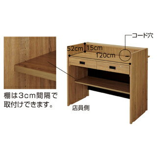)引出し錠付き(鍵×2本付き) コード穴付き アジャスター付き※プラスドライバー必要●素材/フレーム:スチール製 黒革風塗装 天板:メラミン化粧板●サイズ/W120×D75×H105cm 引出し内寸:W51×D39×H7.6cm 手荷物置き:W115×D22.5cm カウンター上段:W120×D15cm●重量/20kg●耐荷重/45kg●組立式●可動棚×1枚付き(3cm間隔で取り付けできます。